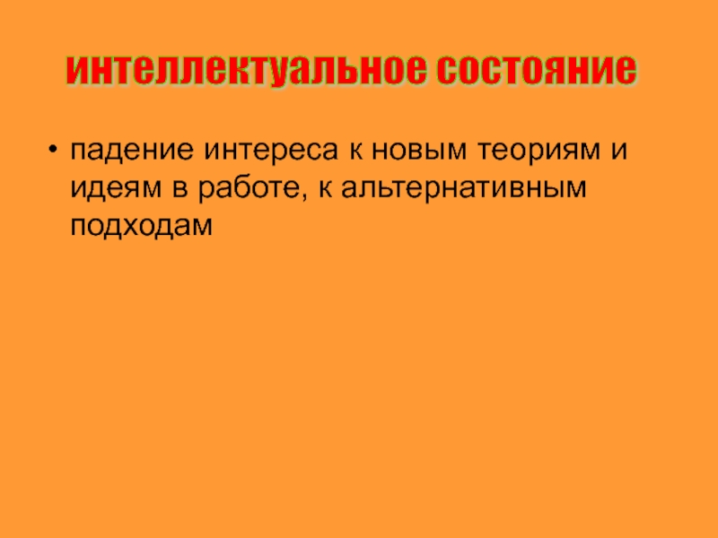 Слайд 16падение интереса к новым теориям и идеям в работе, к альтернативным