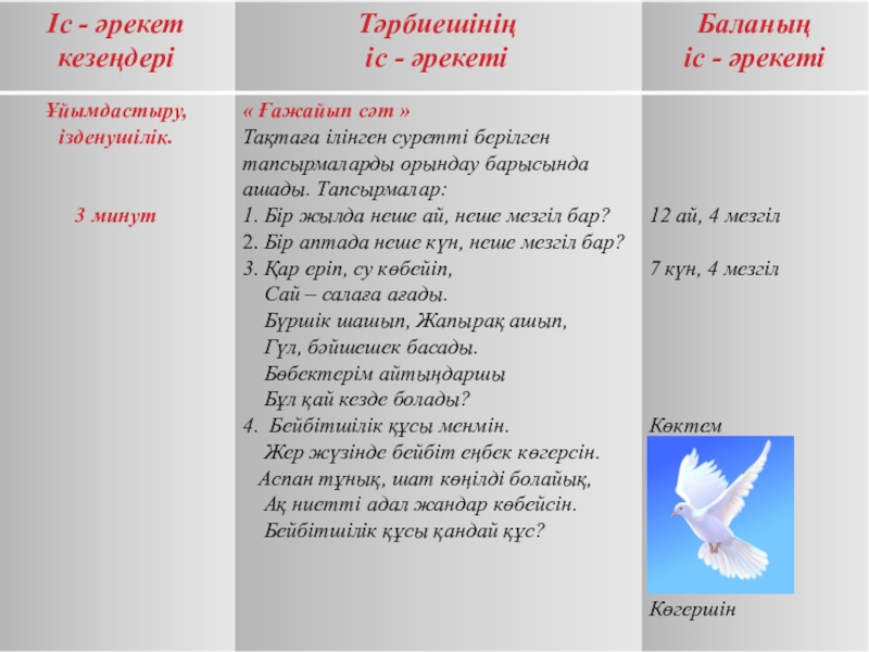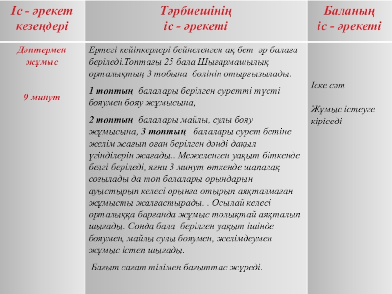 тіл дамыту, математика, айналамен танысу, көркем әдебиет, жапсыру.