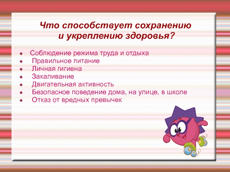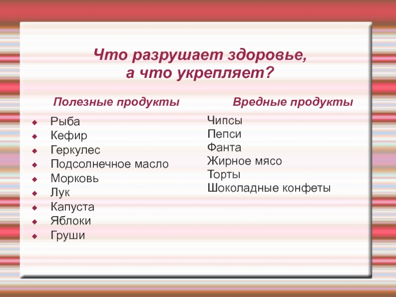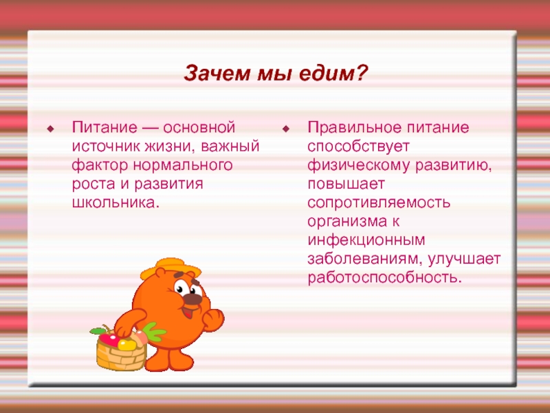 Правильное питание способствует физическому развитию, повышает сопротивляемость организма к инфекционным заболеваниям, улучшает работоспособность.