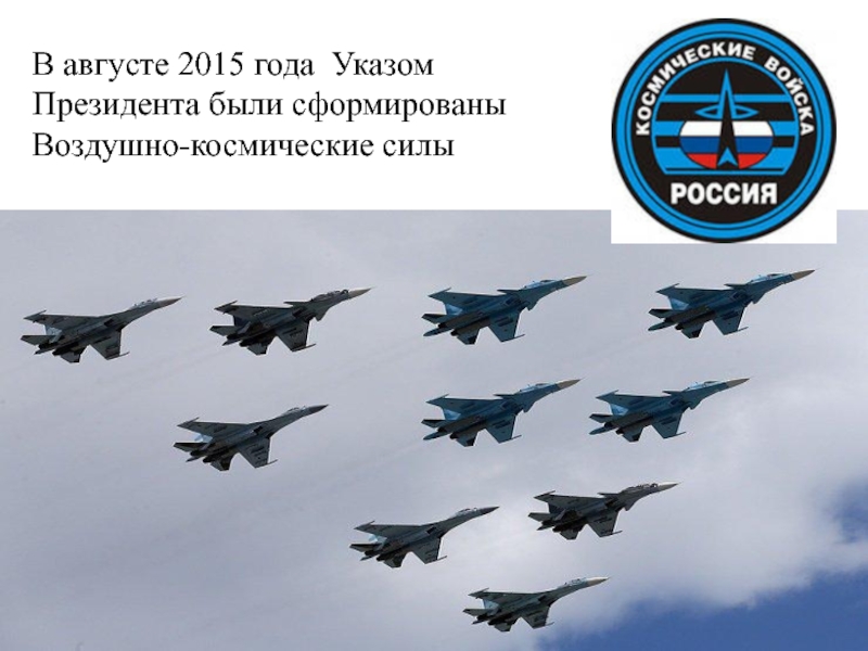 Слайд 11В августе 2015 года Указом Президента были сформированы Воздушно-космические силы