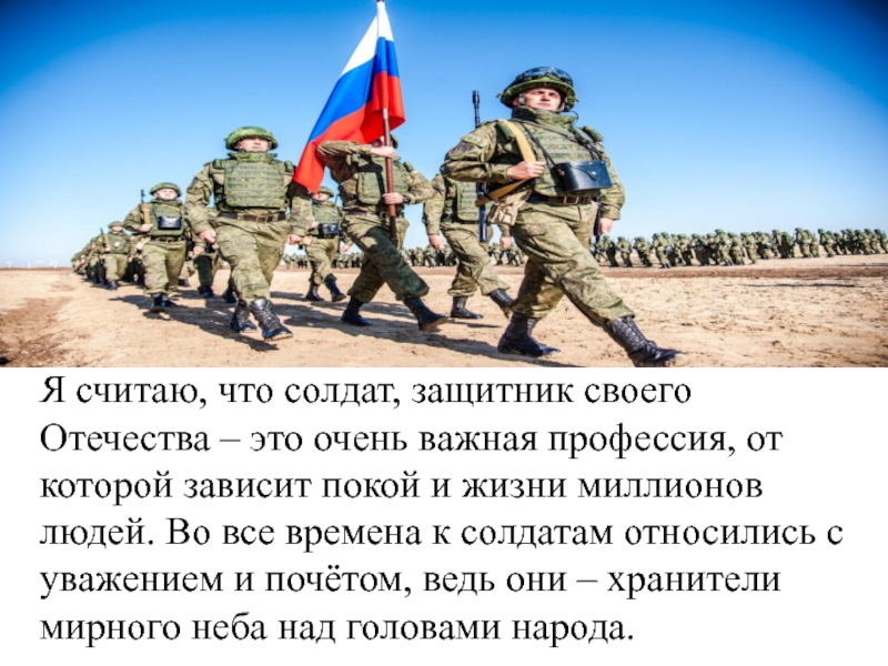 Слайд 18Я считаю, что солдат, защитник своего Отечества – это очень важная