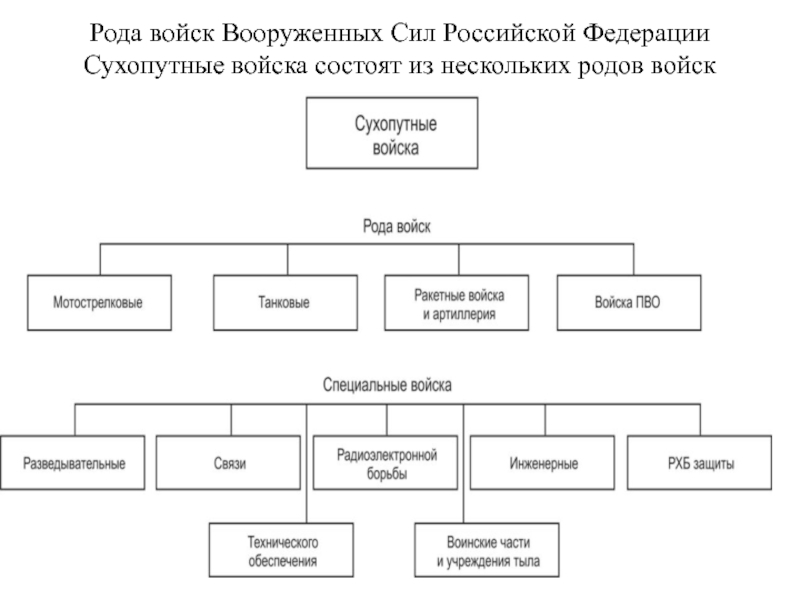 Слайд 7Рода войск Вооруженных Сил Российской Федерации Сухопутные войска состоят из нескольких