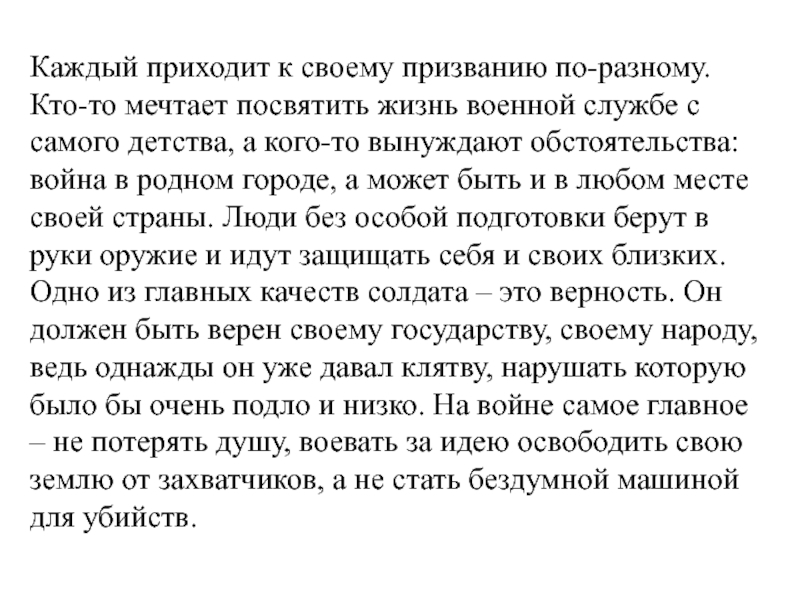 призвание. «Все профессии нужны, все профессии важны» – говорит нам известный детский стишок. Профессия – Родину защищать, профессия солдата.