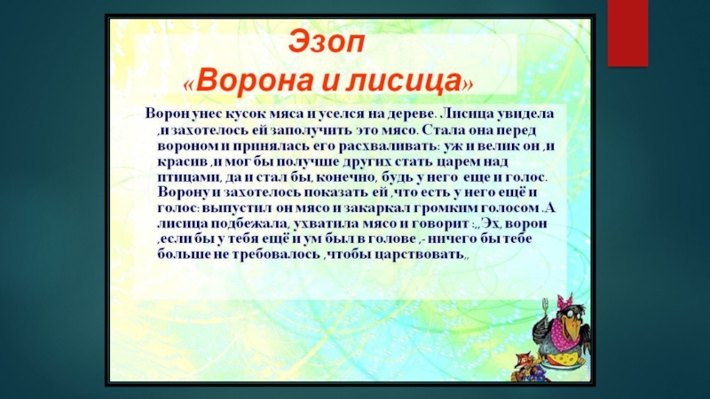 Презентация, доклад . Эзоп Ворон и лисица И. Крылов Ворона и лисица.