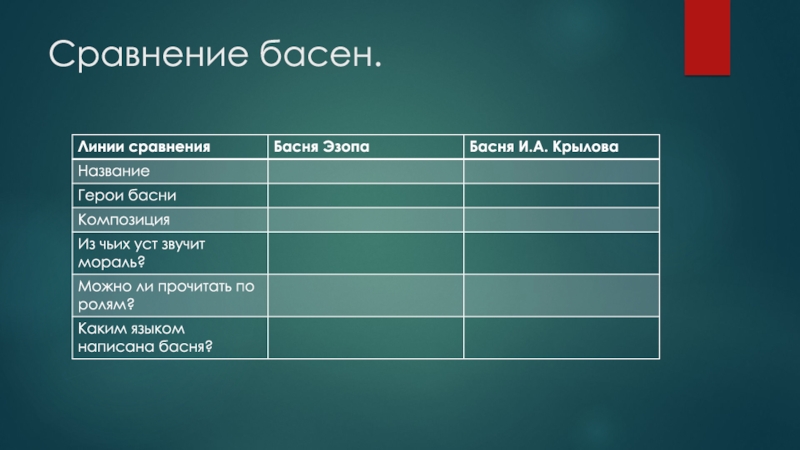 Слайд 1Эзоп «Ворон и лисица» И.А. Крылов «Ворона и лисица». Сравнение басен.