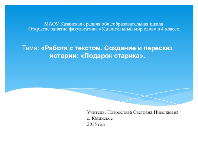 Учитель: Новосёлова Светлана Николаевна