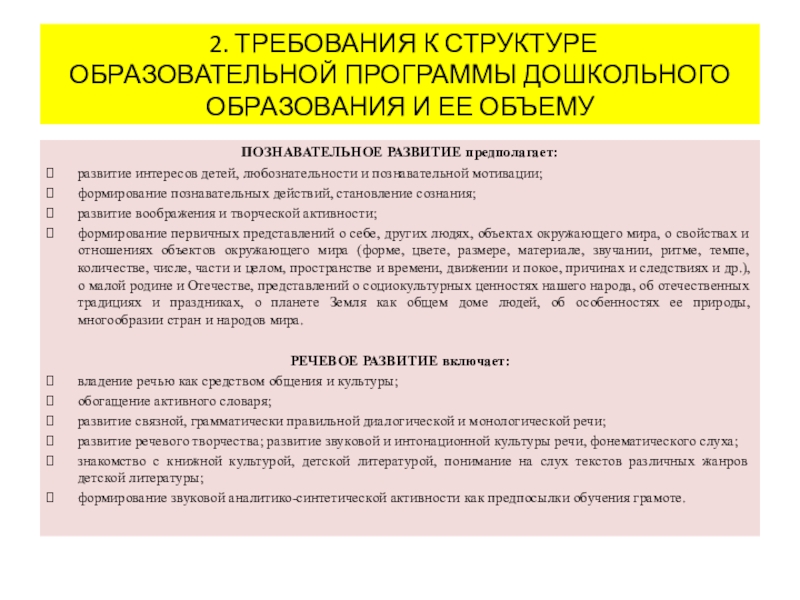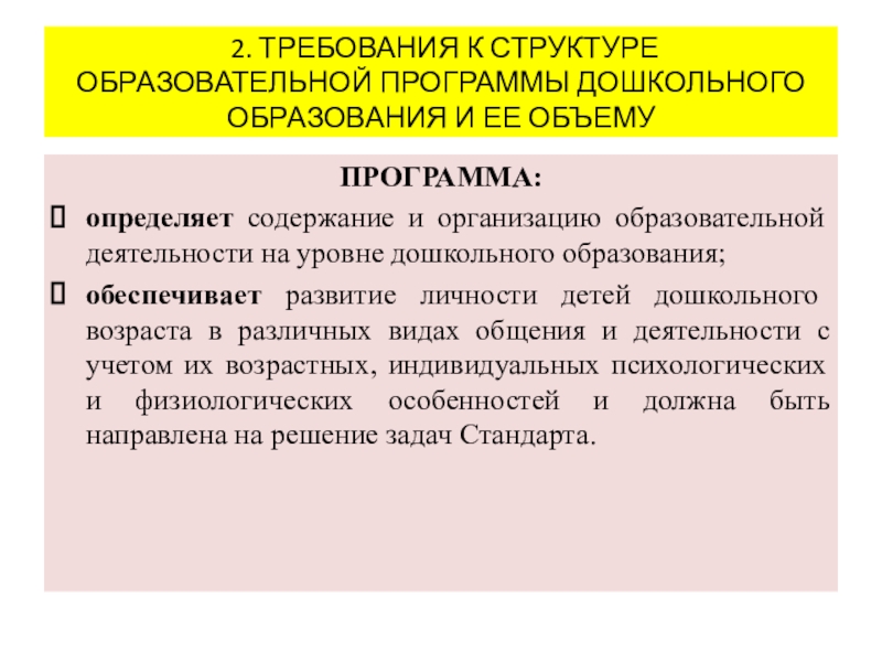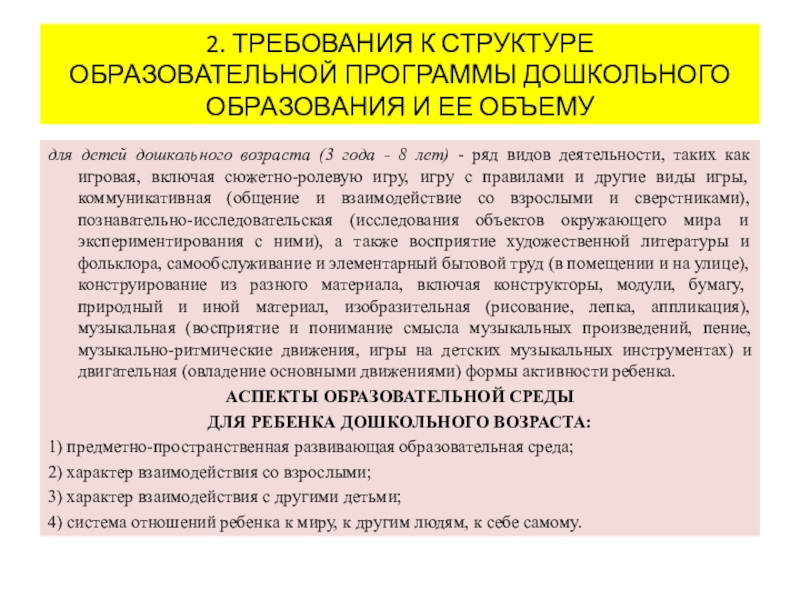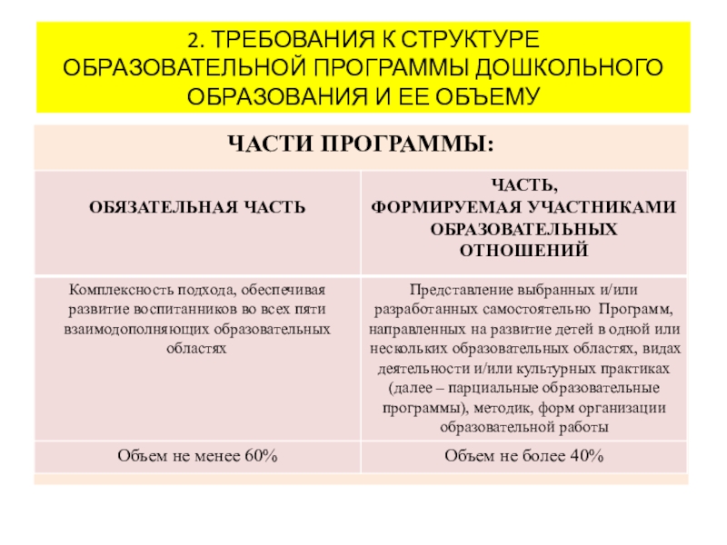 ОБРАЗОВАТЕЛЬНОЙ ПРОГРАММЫ ДОШКОЛЬНОГО ОБРАЗОВАНИЯ И ЕЕ ОБЪЕМУ