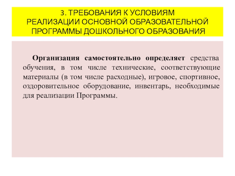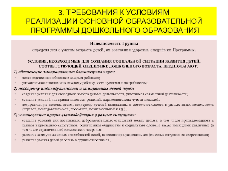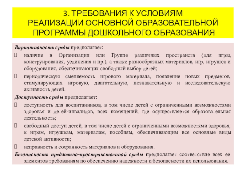 Слайд 493. ТРЕБОВАНИЯ К УСЛОВИЯМ
