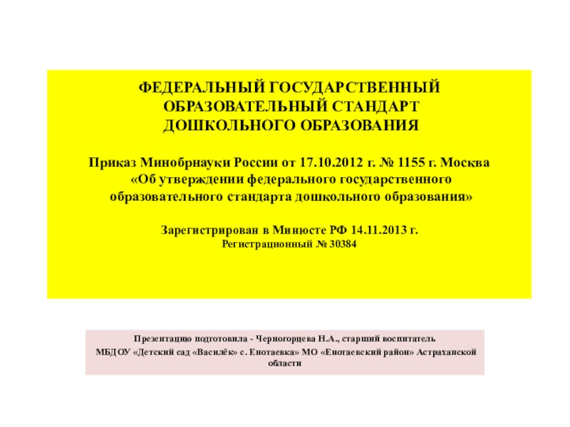 Слайд 2Настоящий федеральный государственный образовательный стандарт дошкольного образования (далее Стандарт) представляет собой
