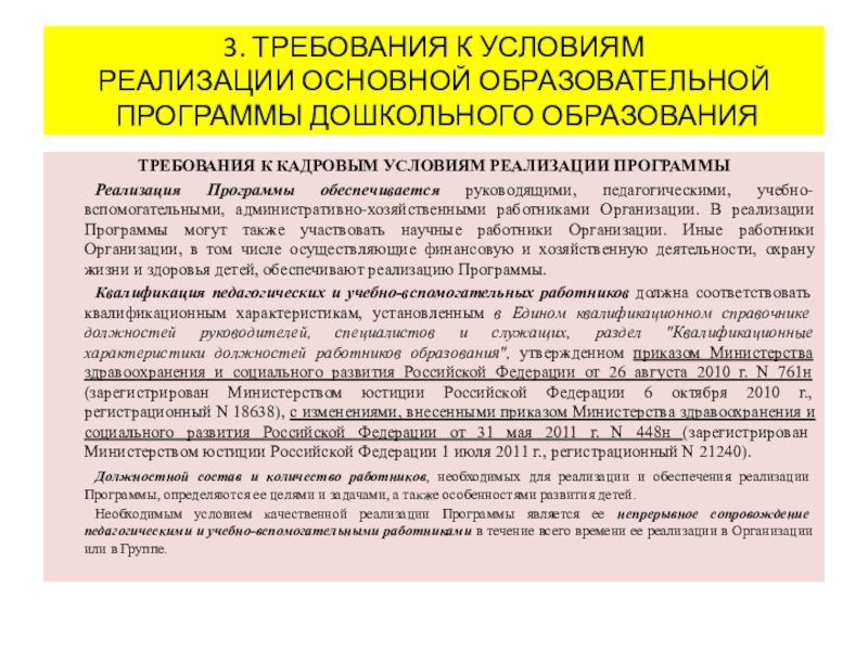 КАДРОВЫМ УСЛОВИЯМ РЕАЛИЗАЦИИ ПРОГРАММЫ