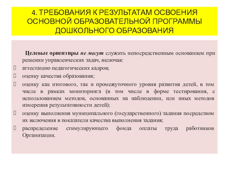4) сохранение единства образовательного пространства Российской Федерации относительно уровня дошкольного образования.