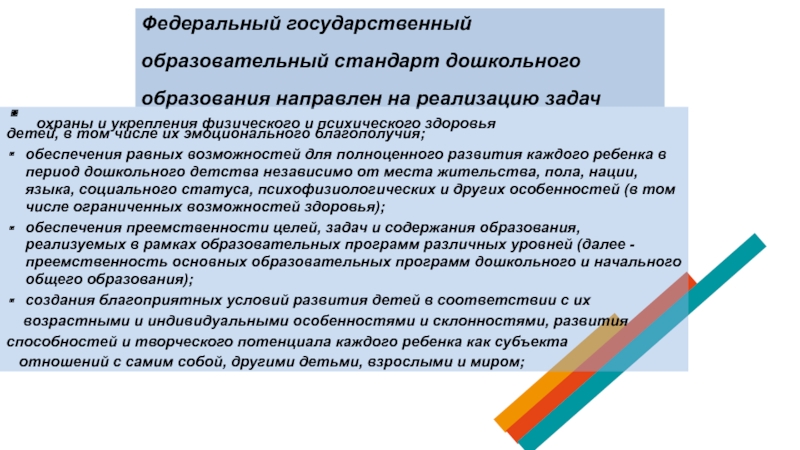 полноценное проживание ребенком всех этапов детства (младенческого, раннего и дошкольного возраста), обогащение (амплификация) детского развития;