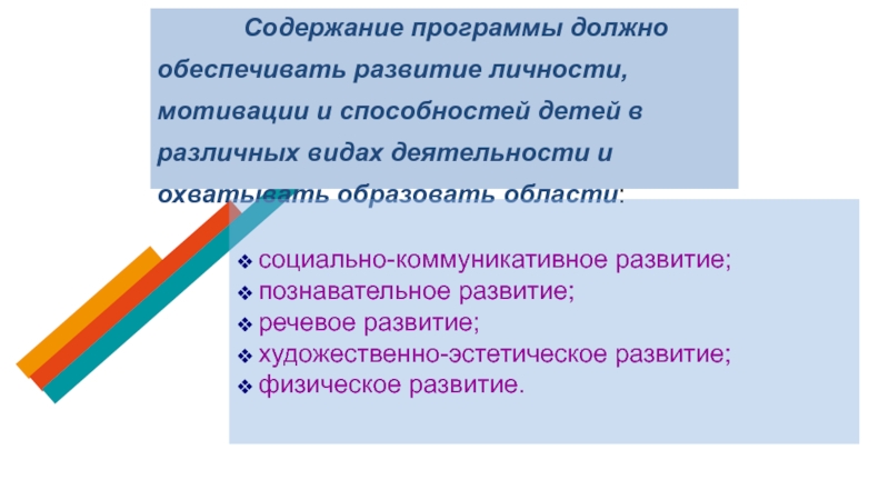 обеспечивает развитие личности детей дошкольного возраста в различных видах общения и деятельности с учетом их возрастных, индивидуальных психологических и физиологических особенностей;