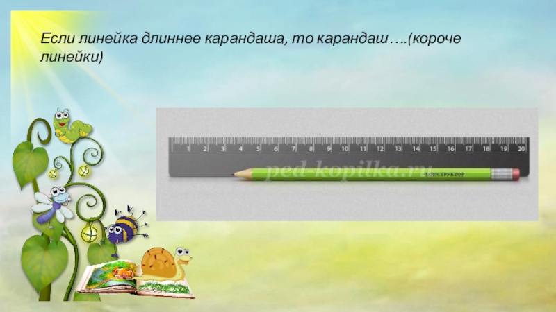 Если линейка длиннее карандаша, то карандаш….(короче линейки)