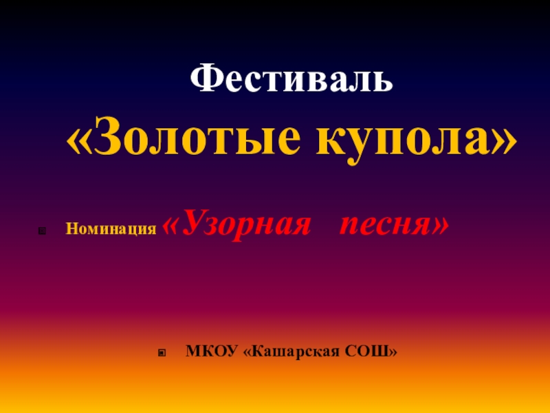 Фестиваль «Золотые купола»  Номинация «Узорная  песня»МКОУ «Кашарская СОШ»