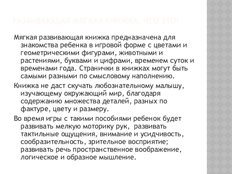 Мягкая развивающая книжка предназначена для знакомства ребенка