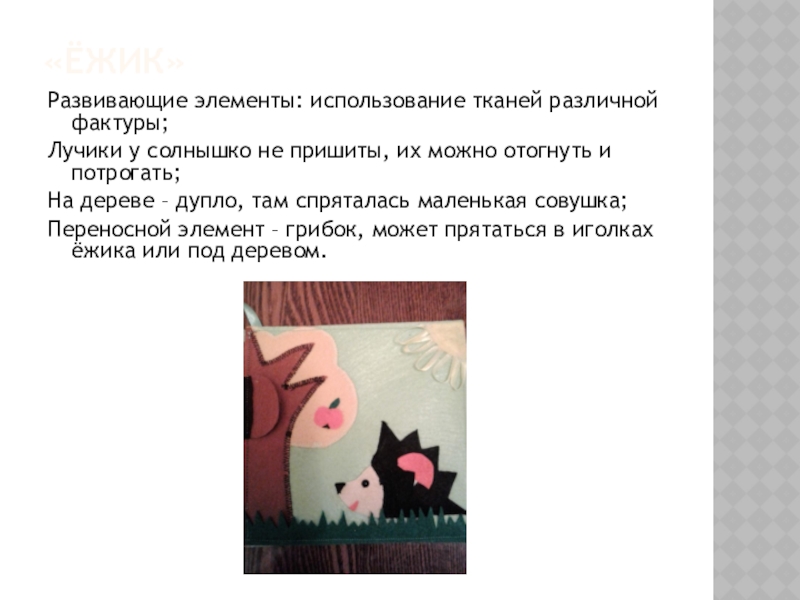 Переносной элемент – грибок, может прятаться в иголках ёжика или под деревом.