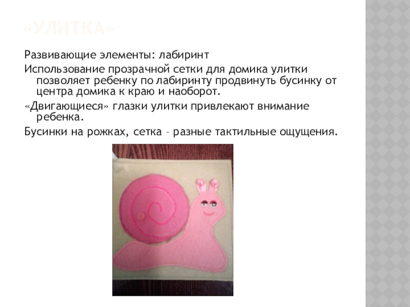 «Двигающиеся» глазки улитки привлекают внимание ребенка.