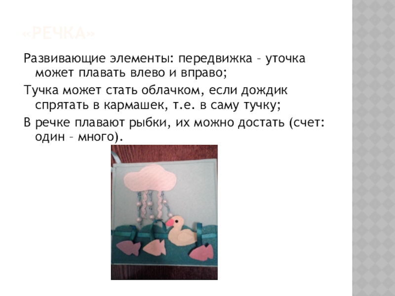 Развивающие элементы: передвижка – уточка может плавать влево и вправо;