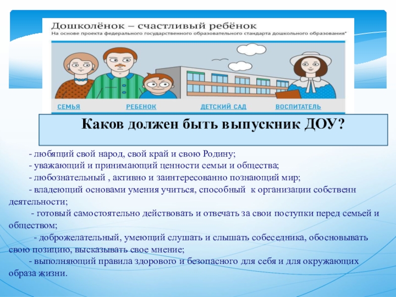 - готовый самостоятельно действовать и отвечать за свои поступки перед семьей и обществом;
