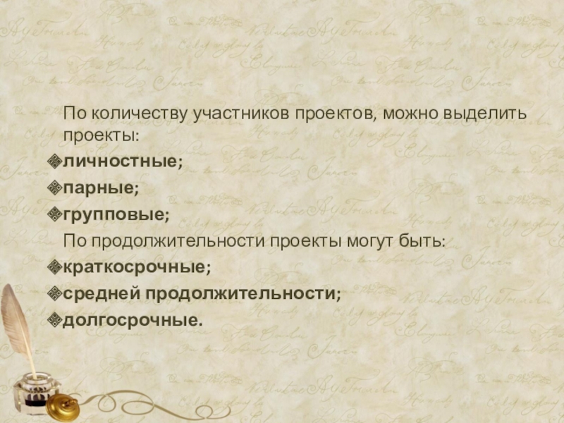 Слайд 8По количеству участников проектов, можно выделить проекты:
