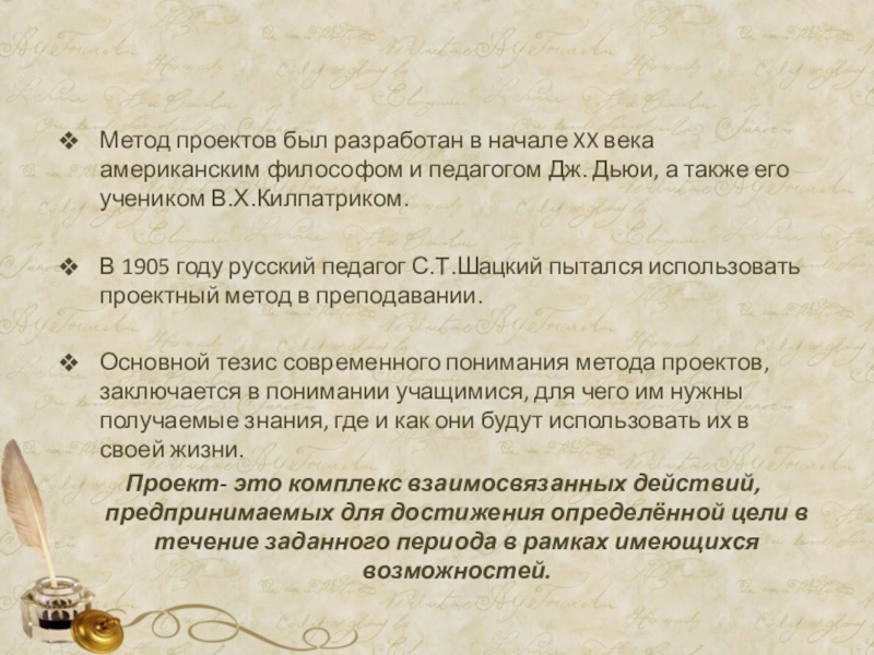 Слайд 2Метод проектов был разработан в начале XX века американским философом и