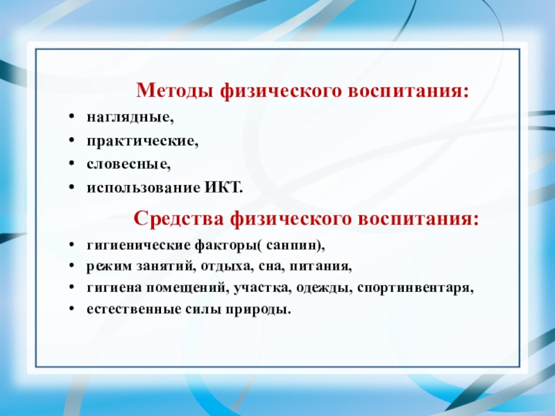 Компоненты физического воспитания:
