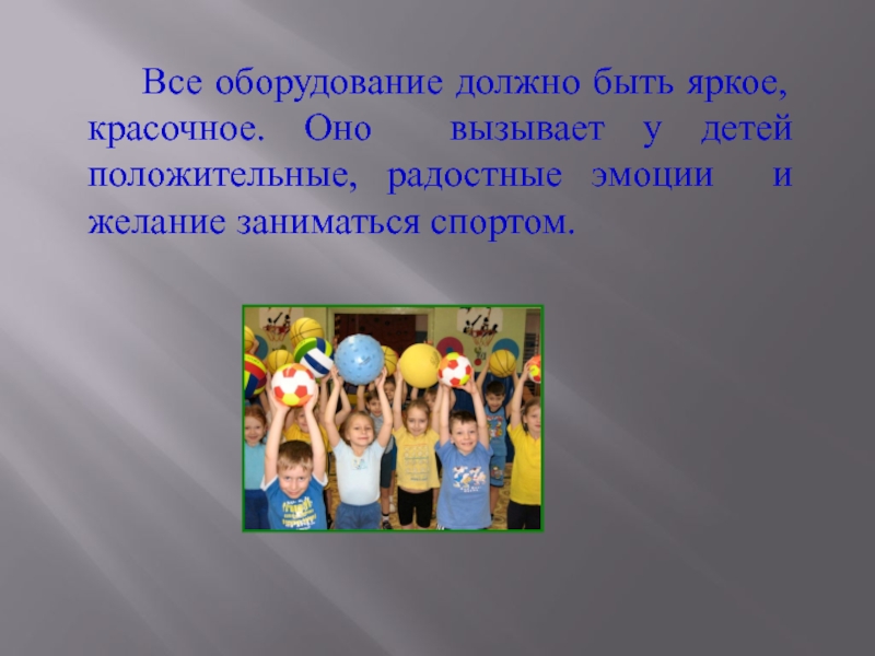 Поэтому нам необходимо находится в постоянном поиске новых подходов к оздоровлению детей, мониторингу состояния каждого ребенка, учете особенностей его организма, индивидуализации профилактических мероприятий, создании условий для полноценного физического развития.
