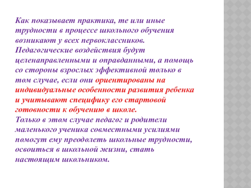 Слайд 75Как показывает практика, те или иные трудности в процессе школьного обучения