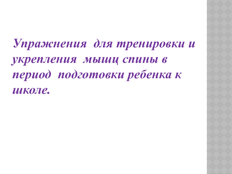 Слайд 63Упражнения для тренировки и укрепления мышц спины в период подготовки ребенка