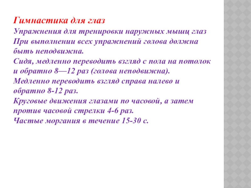 Упражнения для тренировки наружных мышц глаз