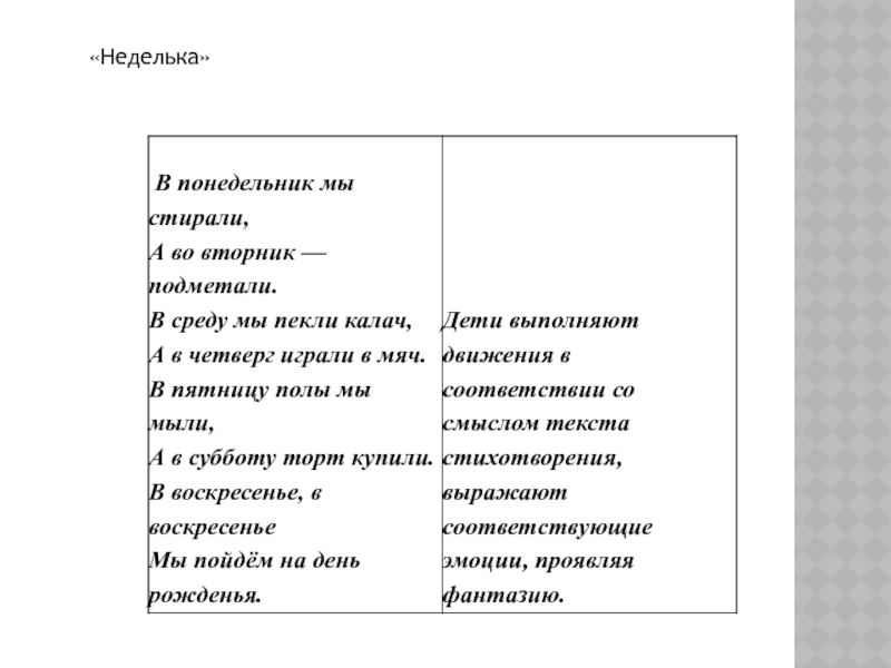 Ребенок поочередно загибает одной рукой пальчики противоположной руки и держит их в кулачке. При словах «Будут пальчики вставать» он поднимает руки вверх и распрямляет пальчики.