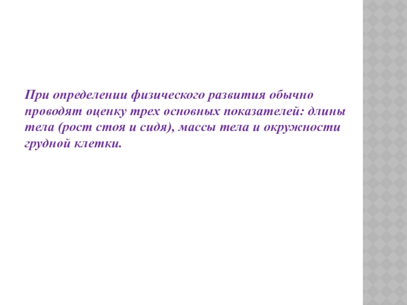 Слайд 10При определении физического развития обычно проводят оценку трех основных показателей: длины