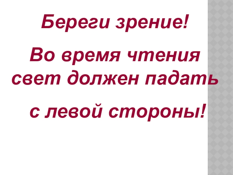 Береги зрение!Во время чтения свет должен падать с левой стороны!