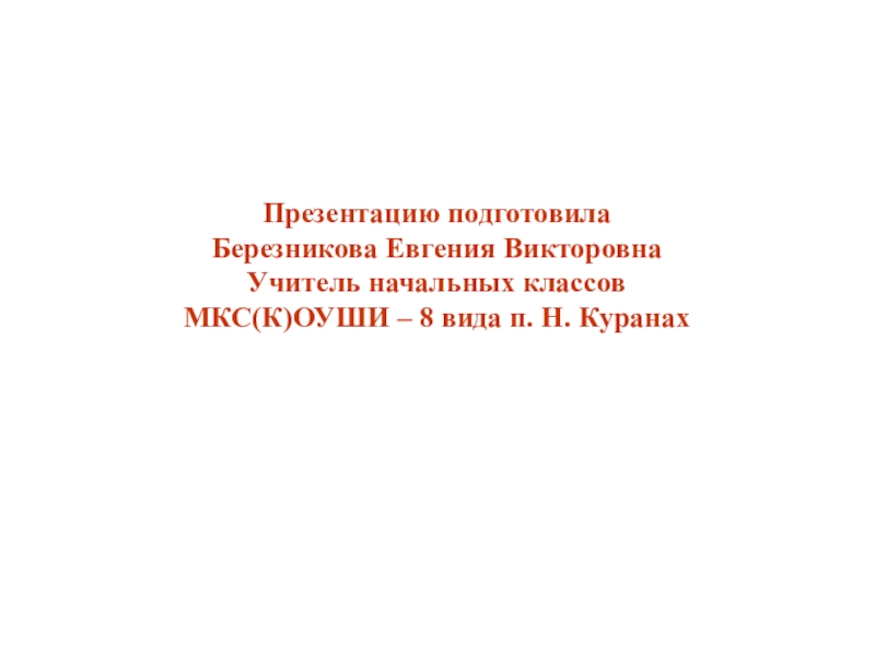 Презентацию подготовилаБерезникова Евгения ВикторовнаУчитель начальных классовМКС(К)ОУШИ – 8 вида п. Н. Куранах