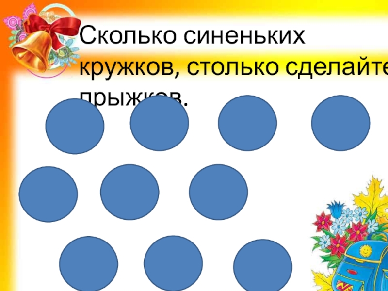 Слайд 10Сколько синеньких кружков, столько сделайте прыжков.