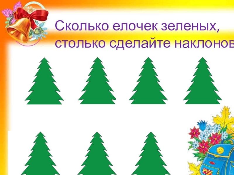 Слайд 8Сколько елочек зеленых, столько сделайте наклонов.