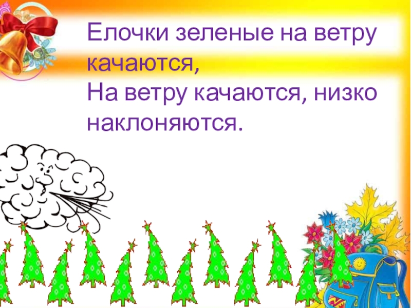 Елочки зеленые на ветру качаются, На ветру качаются, низко наклоняются.