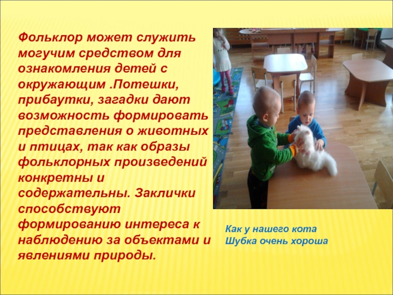 В адаптационный период произведения малого фольклора помогут при установлении контакта с ребенком
