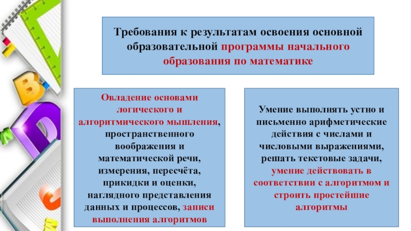 Умение выполнять устно и письменно арифметические действия с числами и числовыми выражениями, решать текстовые задачи, умение действовать в соответствии с алгоритмом и строить простейшие алгоритмы