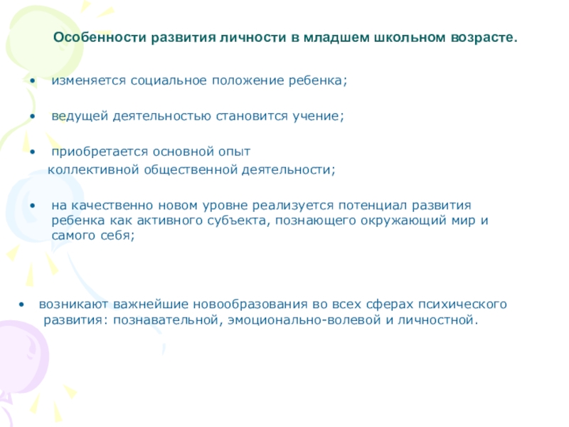 Слайд 8Особенности развития личности в младшем школьном возрасте.