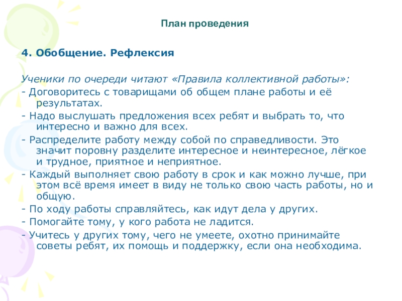 Договоритесь с товарищами об общем плане работы и её результатах.
