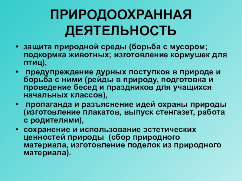 Слайд 8ПРИРОДООХРАННАЯ ДЕЯТЕЛЬНОСТЬ