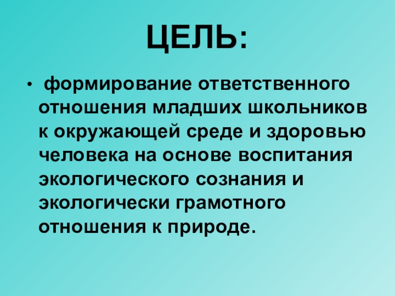 человека на основе воспитания экологического сознания и экологически грамотного отношения к природе.