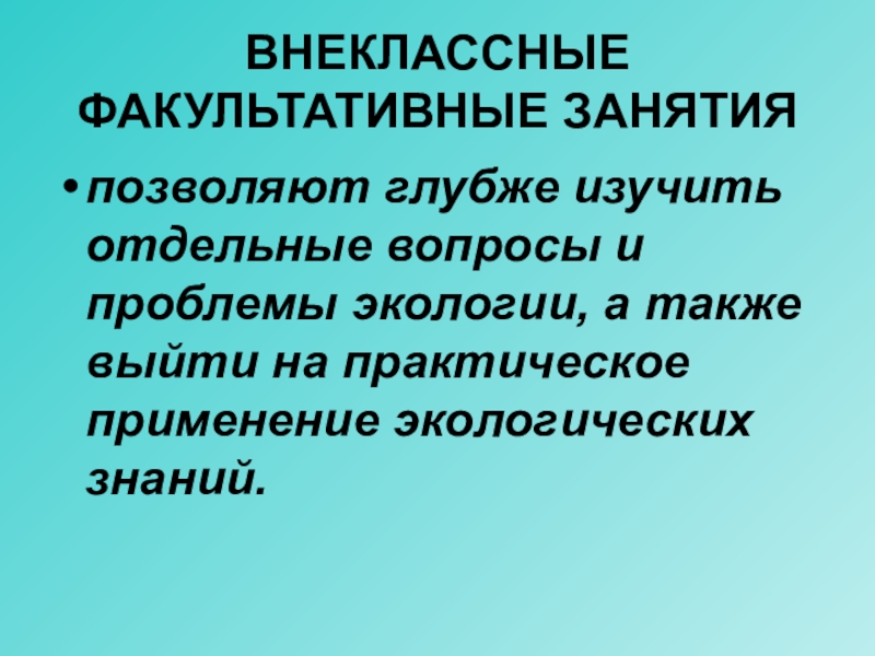 позволяют глубже изучить отдельные вопросы и проблемы экологии, а