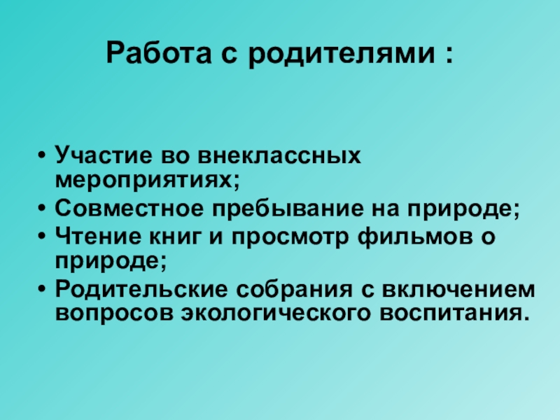 Слайд 13Работа с родителями :