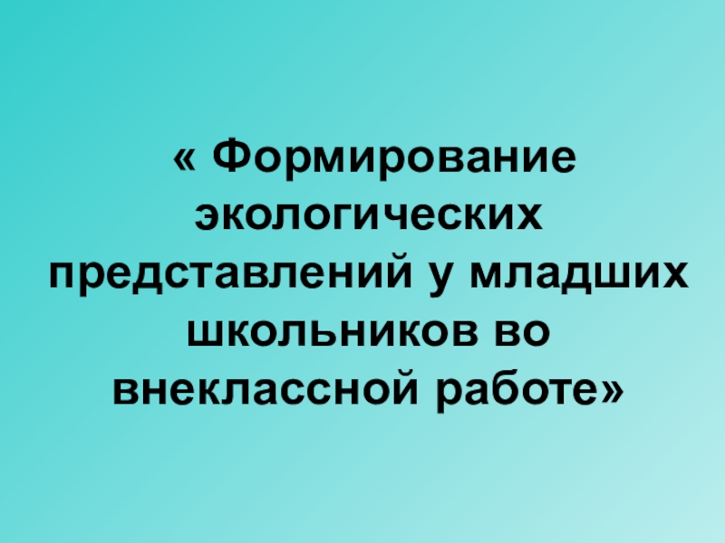 Слайд 1 « Формирование экологических представлений у младших школьников во внеклассной работе»