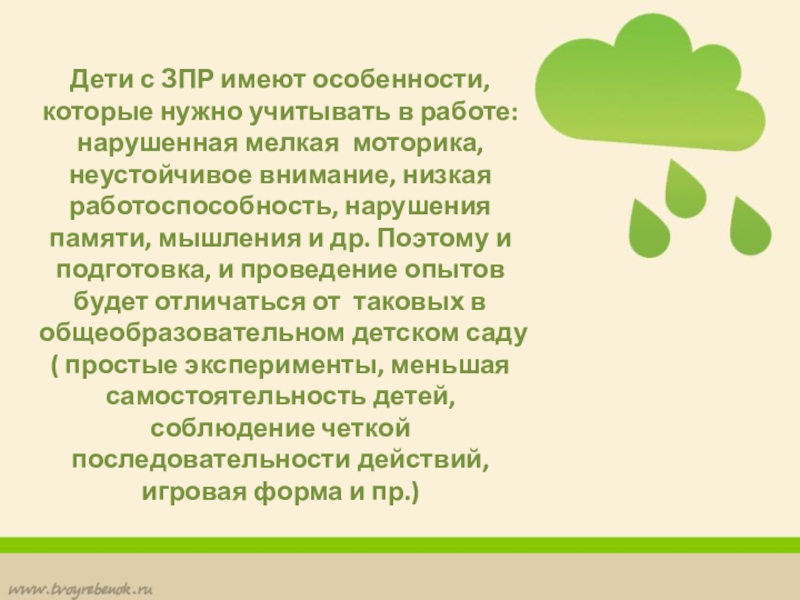 Слайд 4Дети с ЗПР имеют особенности, которые нужно учитывать в работе: нарушенная