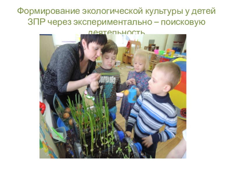 Слайд 1Формирование экологической культуры у детей ЗПР через экспериментально – поисковую деятельность