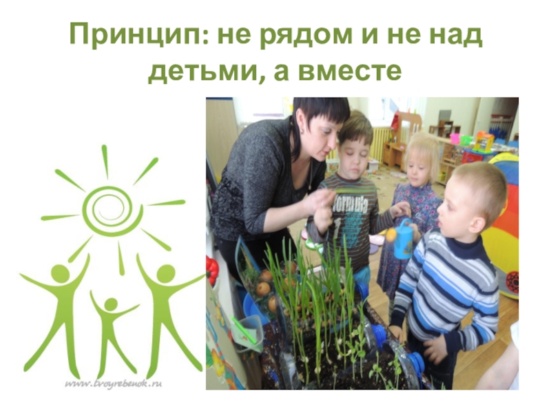 Слайд 7Принцип: не рядом и не над детьми, а вместе